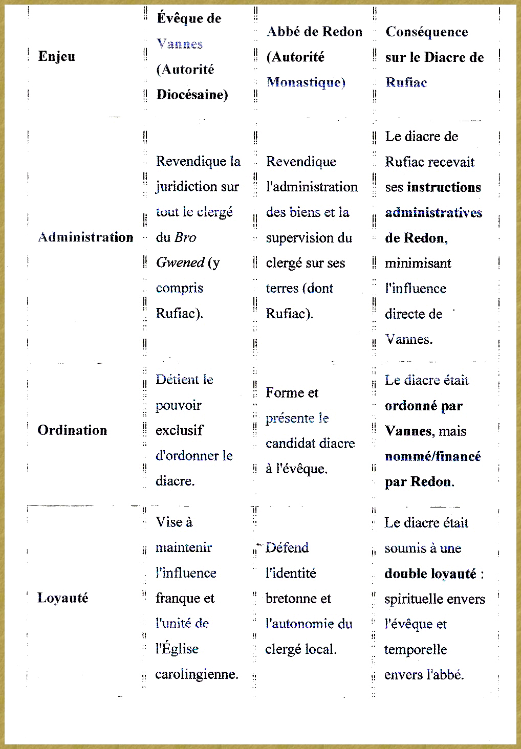 En résumé, à Ruffiac au IXe siècle, les clercs étaient les piliers de l'ordre social, économique, et moral, sous l'égide de la puissante abbaye de Redon.